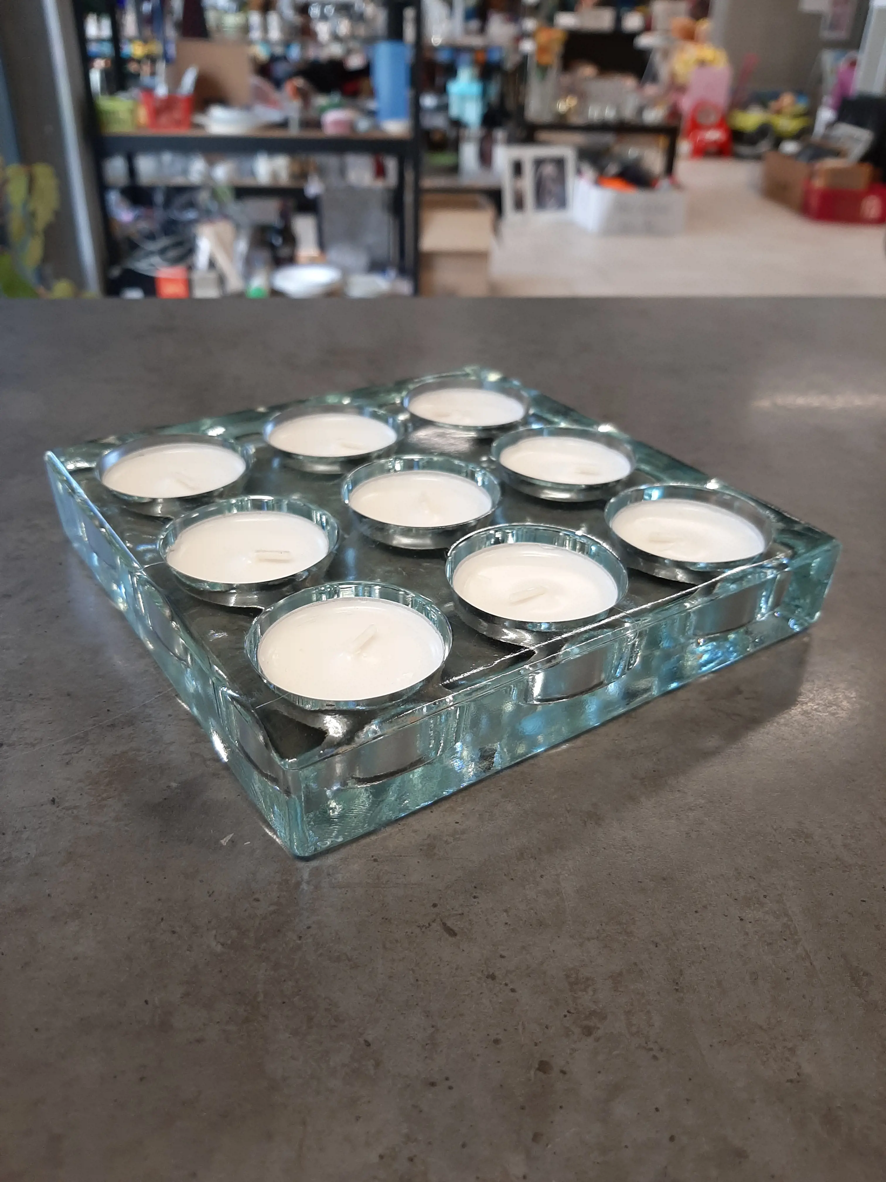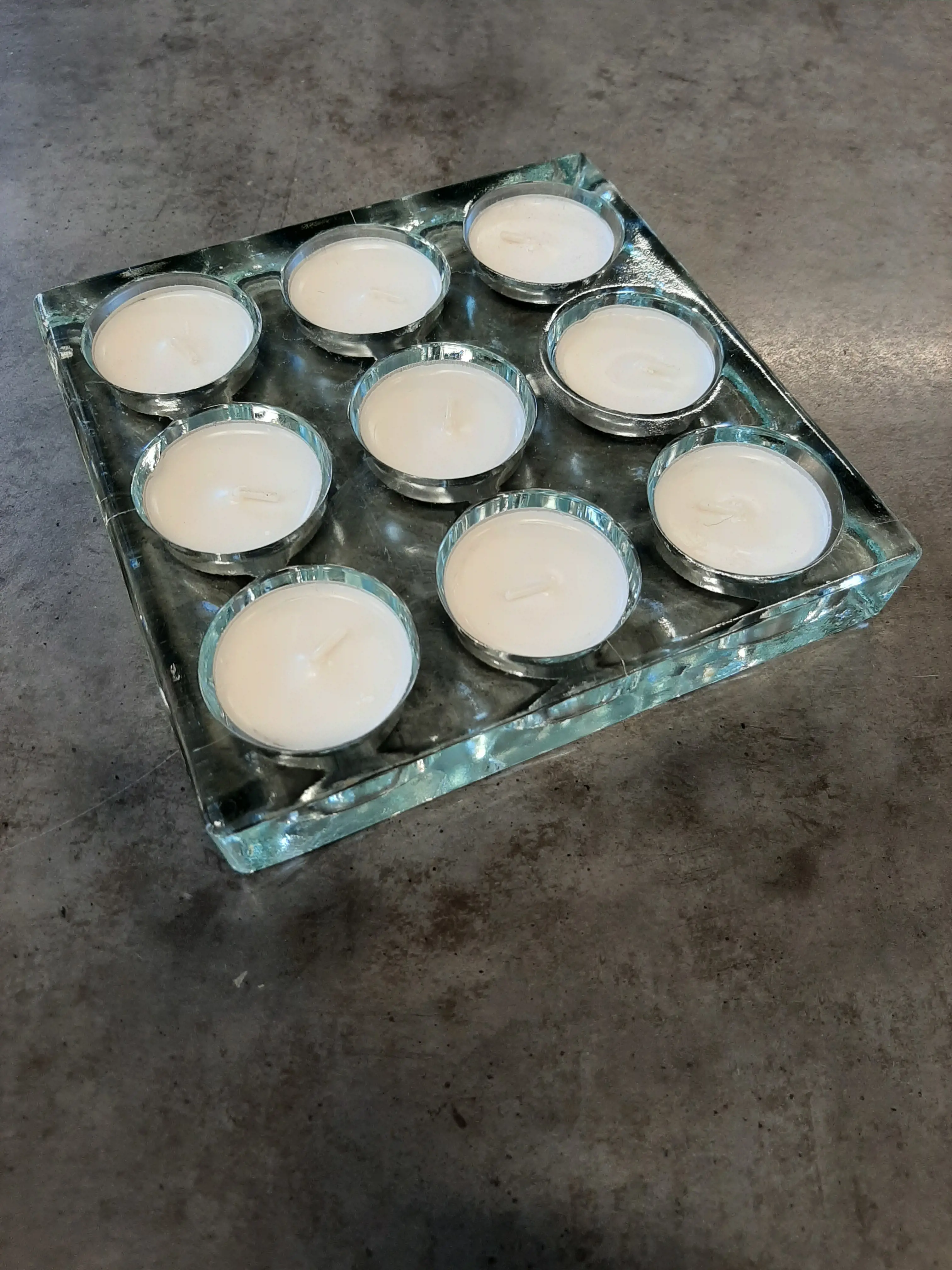 Ťažký sklenený svietnik 16x16cm
